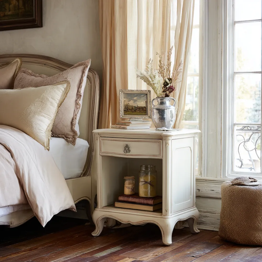ナイトテーブル 木製 45x35x60 cm – クリーム色 – ヴィンテージスタイル